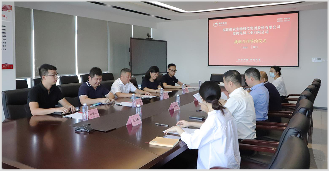 為了積極響應國家“十四五”規(guī)劃和2021年中央一號文件提出的“加快推進農業(yè)現(xiàn)代化建設、依靠科技創(chuàng)新和技術進步推動傳統(tǒng)農業(yè)養(yǎng)殖業(yè)向規(guī)模化、工業(yè)化、智能化方向發(fā)展”的號召,2022年8月24日,廈鎢電機工業(yè)有限公司(簡稱“廈鎢電機”)與福建傲農生物科技集團股份有限公司(簡稱“傲農集團”)在傲農廈門觀音山運營中心舉行戰(zhàn)略合作簽約儀式。廈鎢集團常務副總裁兼廈門勢拓智動董事長鐘可祥先生和傲農集團董事長、總裁吳有林先生代表雙方權屬公司簽署了戰(zhàn)略合作協(xié)議。簽約儀式由傲農集團董事、養(yǎng)豬產業(yè)經營總部總裁葉俊標先生主持,廈門勢拓智動科技有限公司總經理李宓貞女士和傲網信息科技總經理郭靖先生等人出席了簽約儀式。