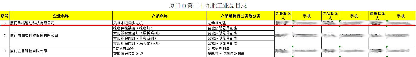 勢(shì)拓智動(dòng)永磁電機(jī)榮登廈門市工業(yè)品目錄