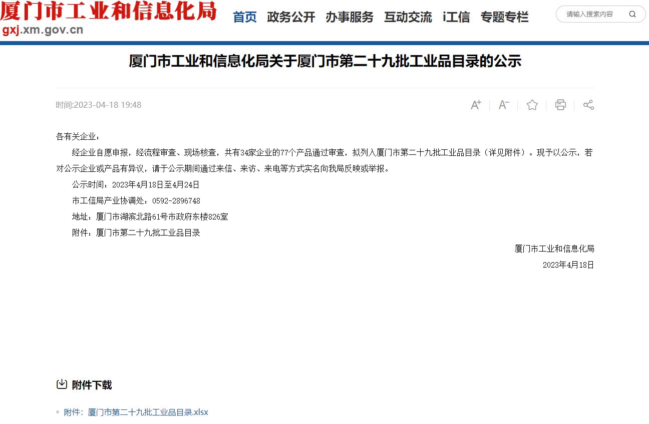 4月28日,廈門市工業(yè)和信息化局于公示期結(jié)束后正式發(fā)布廈門市第29批工業(yè)品目錄,廈門勢(shì)拓智動(dòng)科技有限公司名列其中。